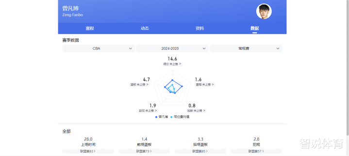 曾凡博是国内稀缺的空间型四号位,身体敏捷,动静态天赋出色,有一定持球和投射能力。