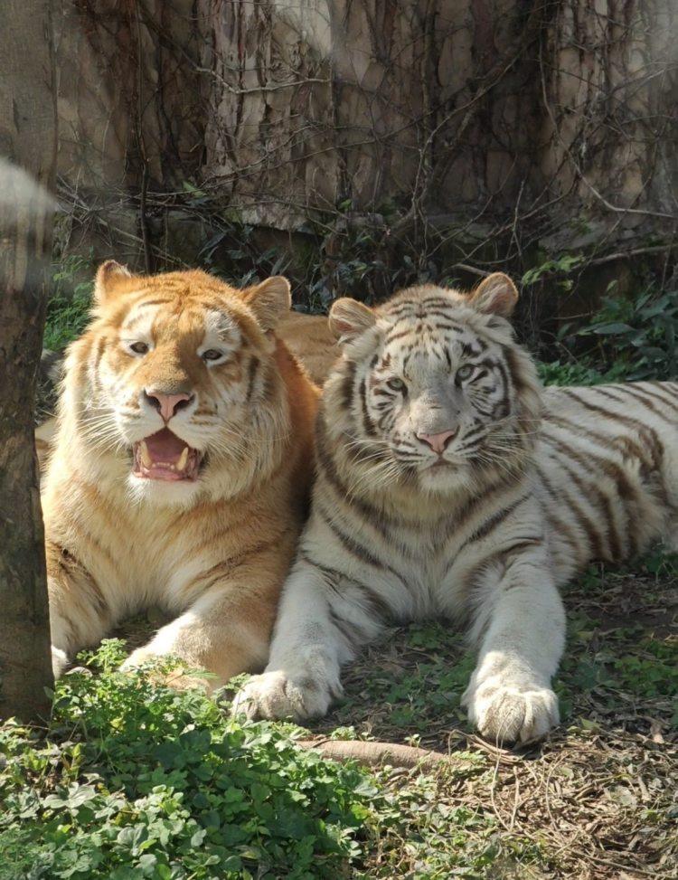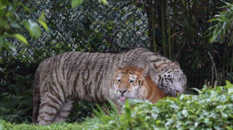 这对小老虎是一对“龙凤胎”,哥哥是金虎,妹妹是白虎,同属孟加拉虎。它们出生不久便由人工饲养,下个月即将迎来两岁生日。