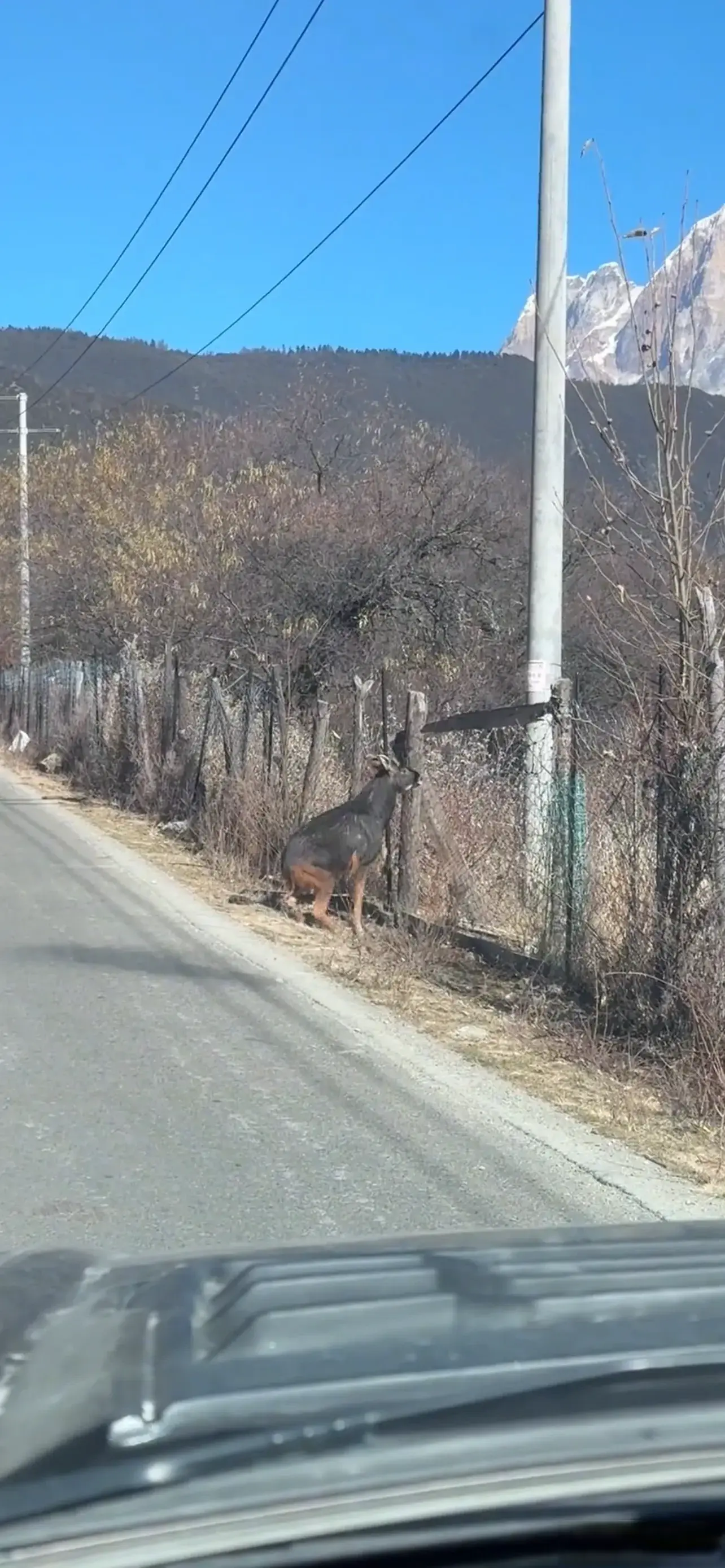 这天,西藏林芝,一女子驾车出门游玩。哪想,在路上这里,发现如此一只怪动物。着实让女子摸不着头脑,到底是个啥品种来的?
